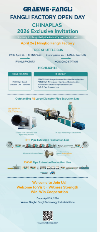 Apirilaren 21etik 24ra CHINAPLAS 2026-n, bisitatu Fangli Technology 7.1C14 standean. Azter ditzagun elkarrekin plastikozko hodien ekipoetan berrikuntza eta etorkizuneko lankidetza!